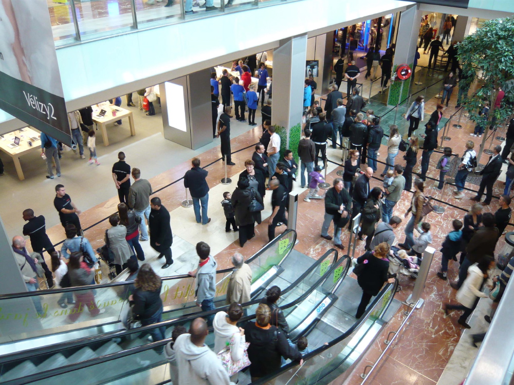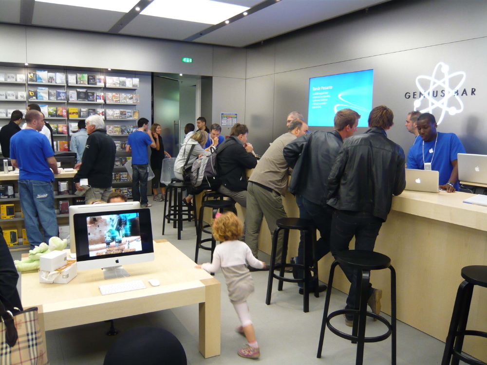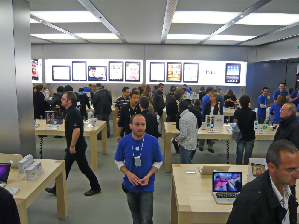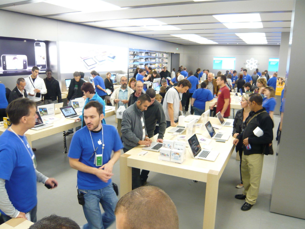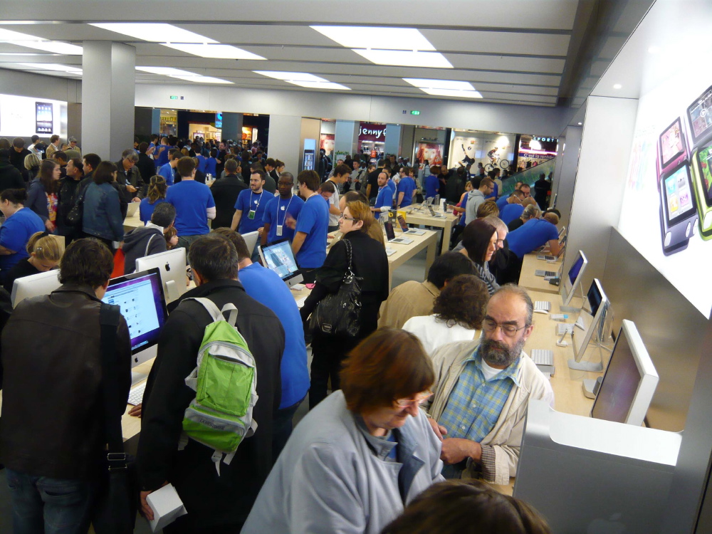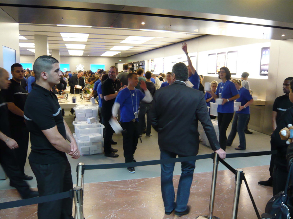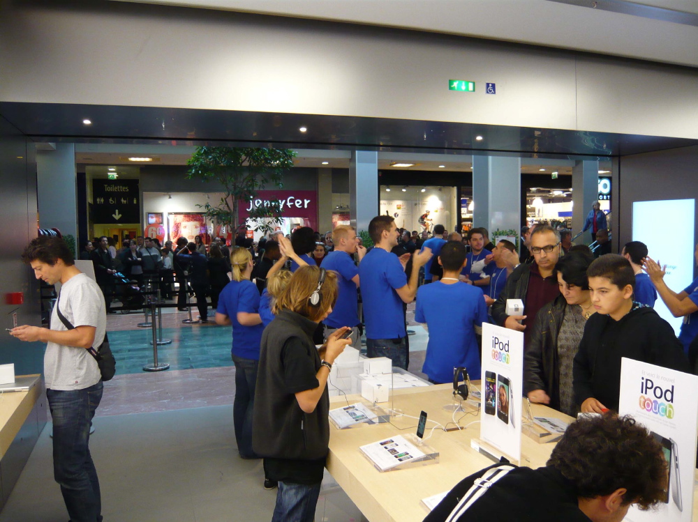 comme d’hab, du monde, des tee-shirt bleu qui motivent la foule, des tee-shirts commémoratif... le cérémonial habituel d’ouverture d’un Apple Store.